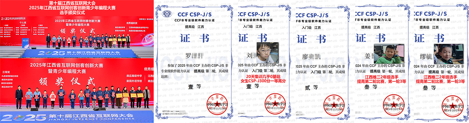 自创OJ系统,即Online Judge系统,是一种在编程竞赛中用来评测参赛程序的在线系统,也可以用于平时练习,我们自主研发的在 线判题OJ系统,更加契合我们的日常教学需求,并能有效地实现教学内容。1年算法c++刷300题,csp普及组1等,顶级私立初中竞赛 班,重点高中重点班2年出成绩,csp提高1等,获得985强基资格,算法C++刷400题3年冲省队,冲击清北(需要天赋)(根据个人情况上 下浮动一倍时间)