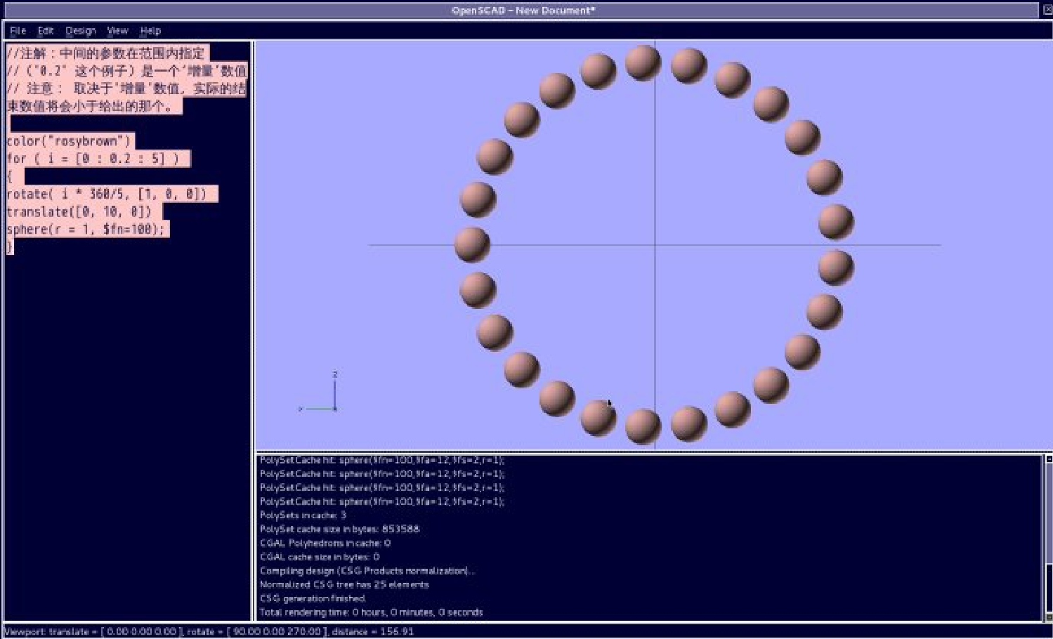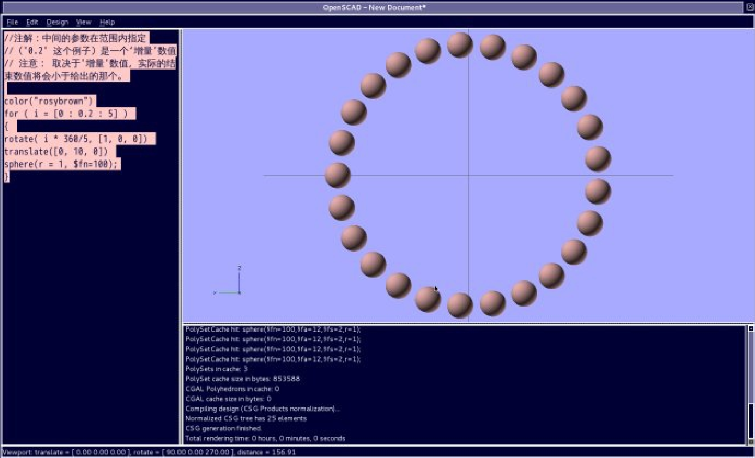 解释:旋转的角度,因为默认的增量是正整数,从 1 到 5 ,然后,如果选择 i*360/6 ,结果是 60 度,而360/5 是 72 度,和增量一样,所以等分,如果是 360/8 ,那么就会是 45 度,会每间隔 45 度有一个模型,而有一个多余的,在负方向,所以可能是系统默认的, 0 ,或者是起始吧!