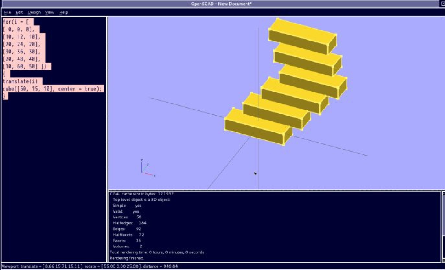 这个就容易理解多了,循环每一个不同坐标位置的数组,立方体模型尺寸 [50,15,10].