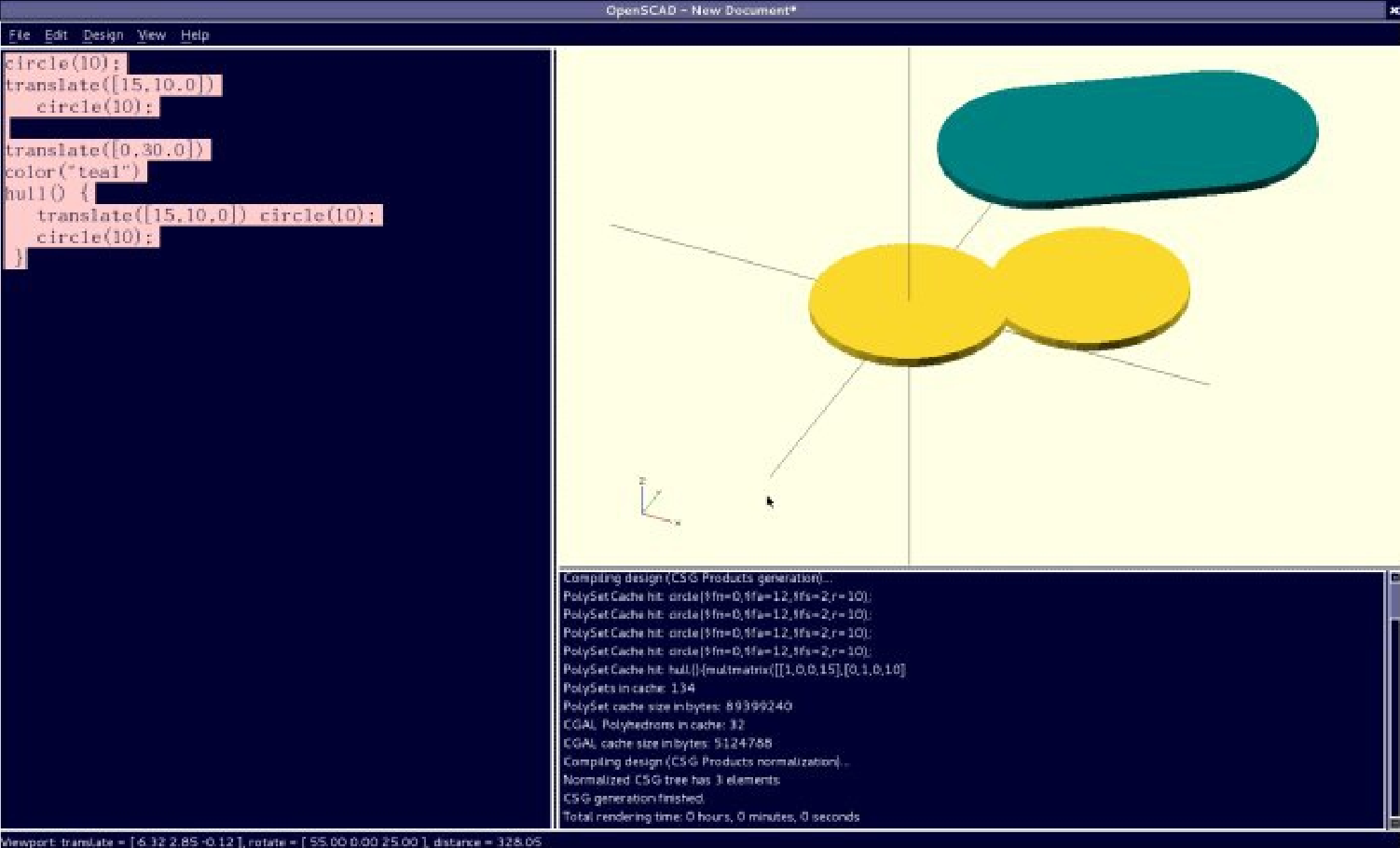 hull() { translate([15,10,0]) circle(10); circle(10); }
